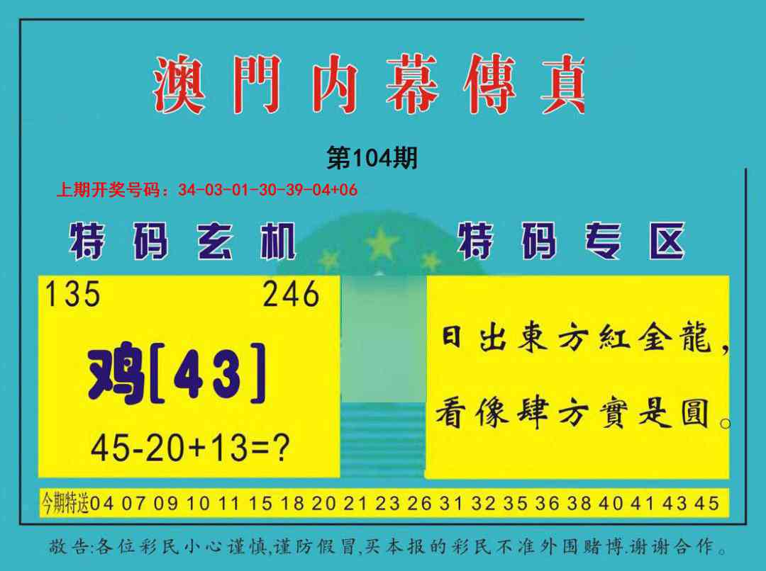 2026104内幕传真