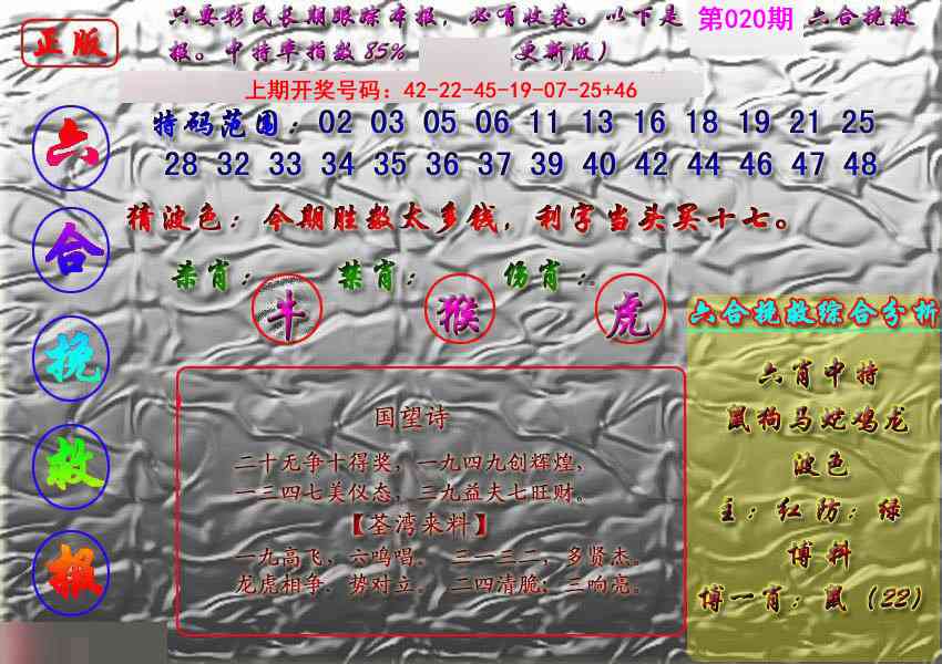 标签: 说明:提供最快、最新、最全的彩色正版全年图纸新闻资讯,同时还提供六合港彩开奖时时在线直播、平特码数据生肖大小单双等走势分析、六合港彩及彩票开奖新闻资讯以及专家心水推荐等。