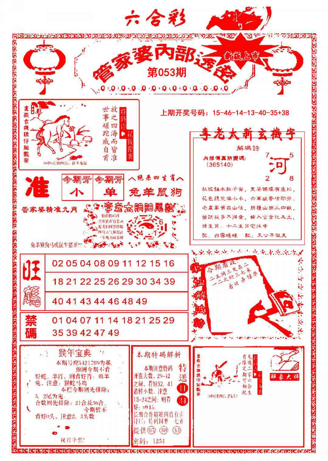 2026053管家婆内部透密