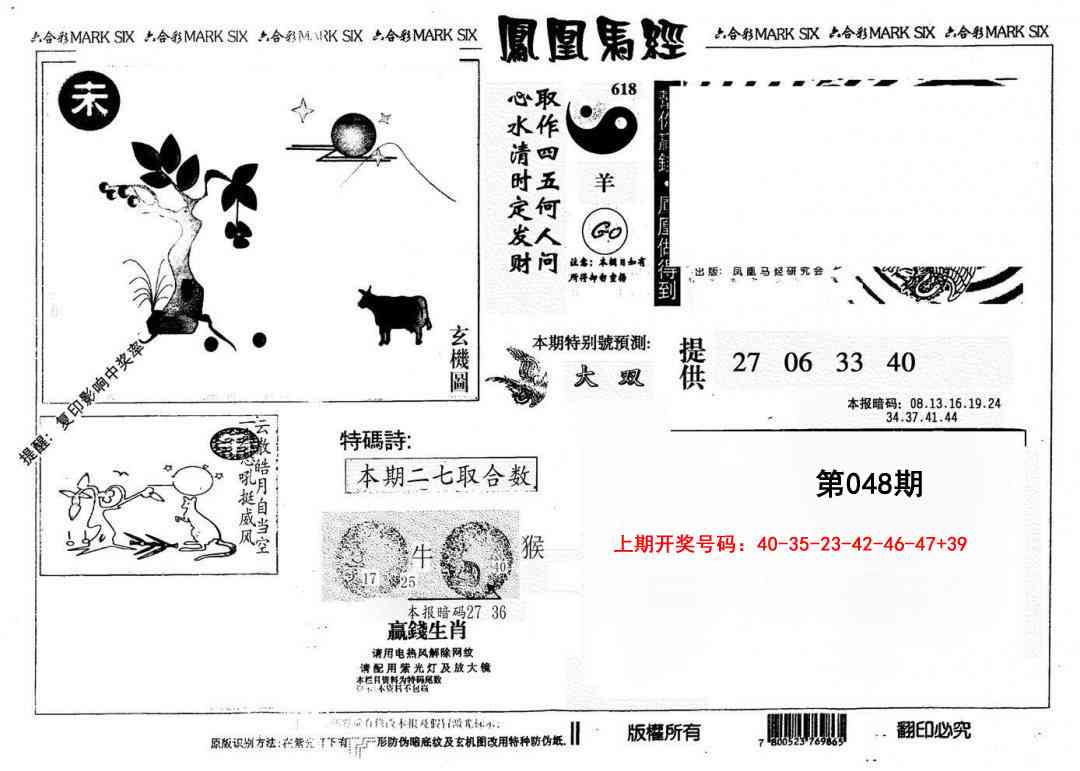 2026048另版凤凰马经