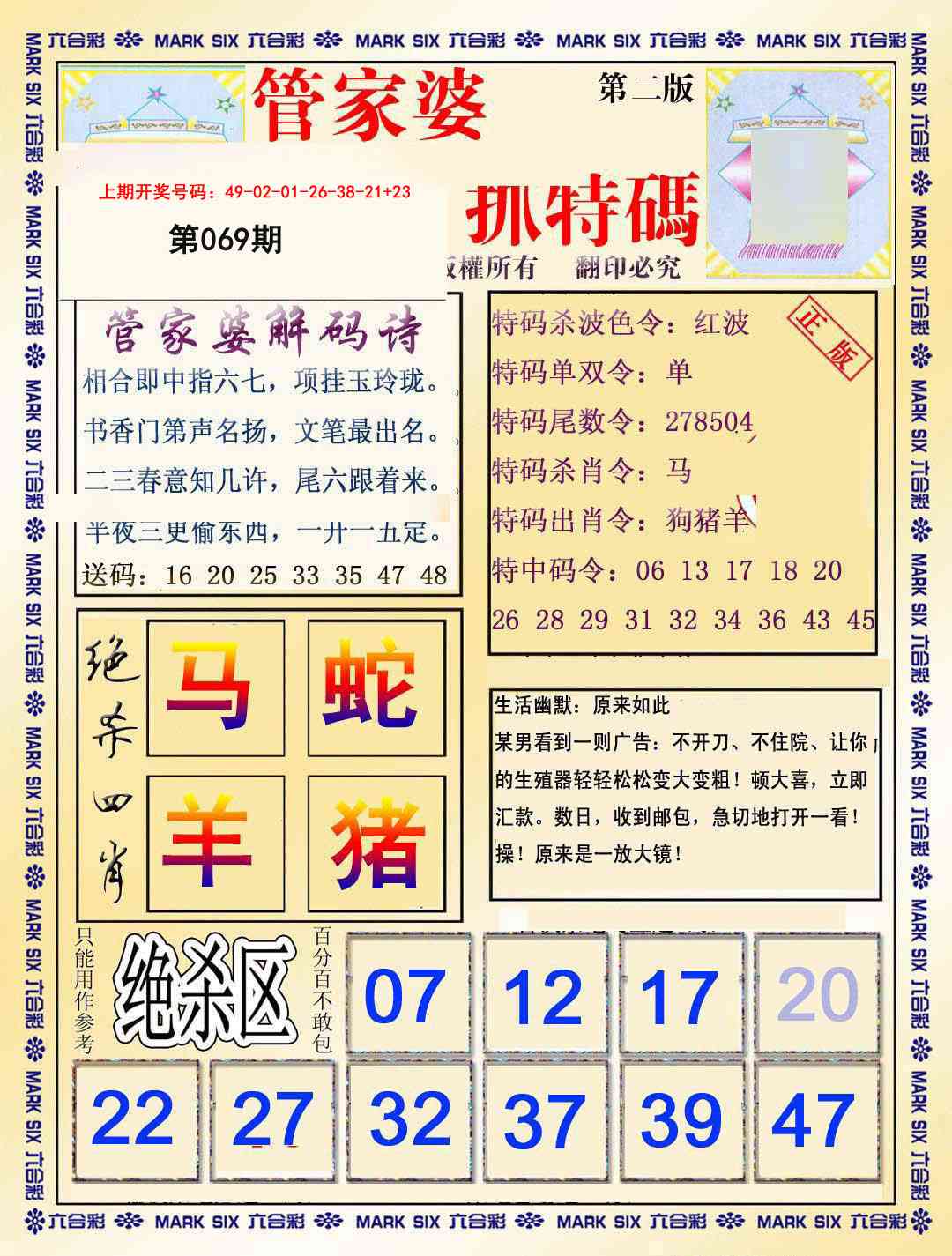 2026069管家婆抓特码B