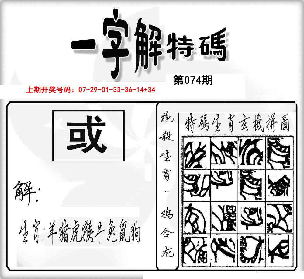 2026074一字解特码