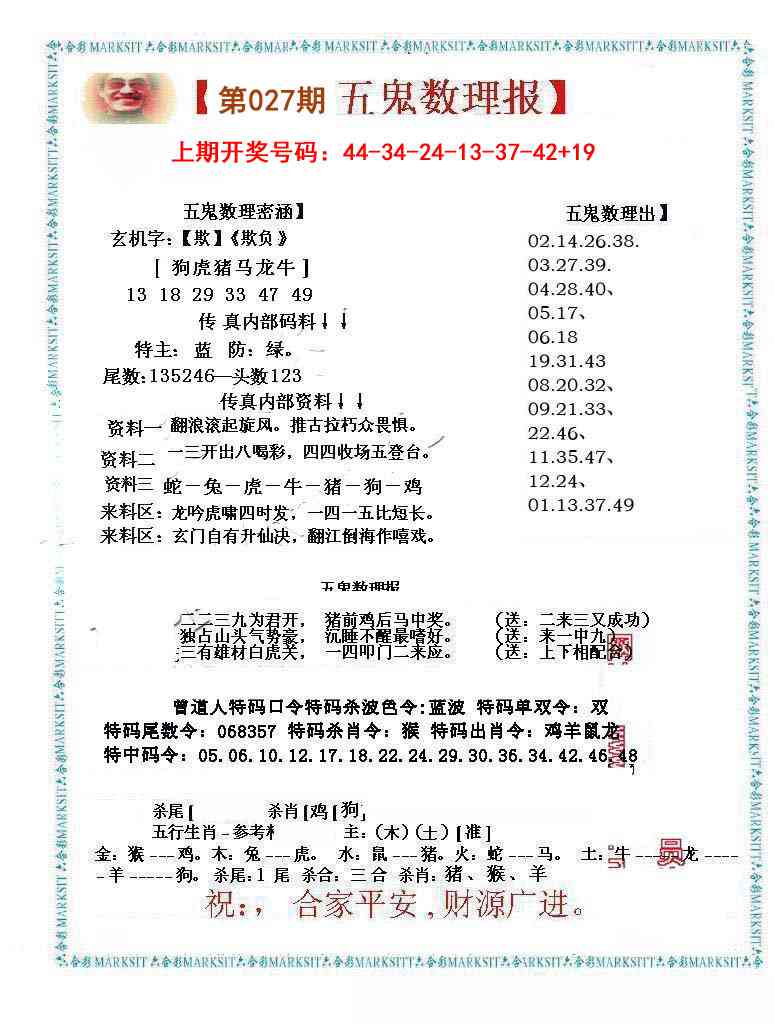 2026027五鬼数理报