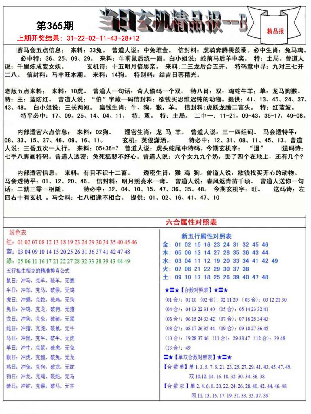 2025365当日玄机精品报B