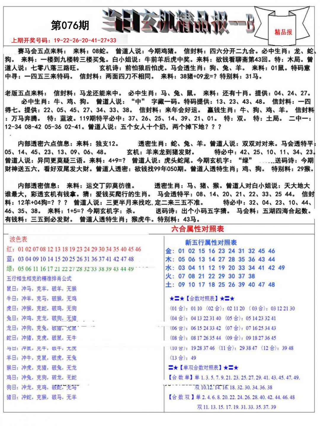 2026076当日玄机精品报B