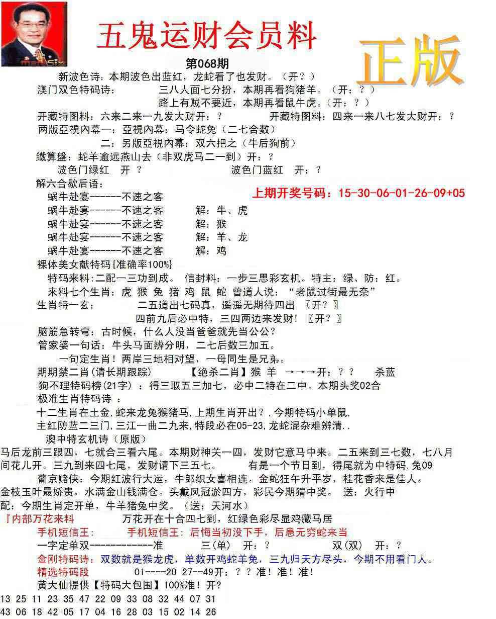 2026068正版五鬼运财会员料