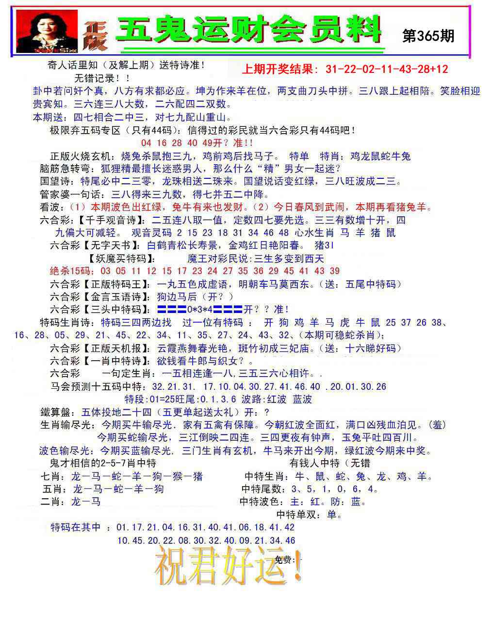 2025365五鬼运财会员料