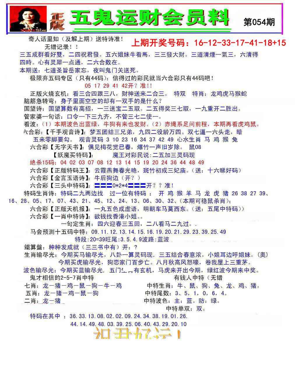 2026054五鬼运财会员料