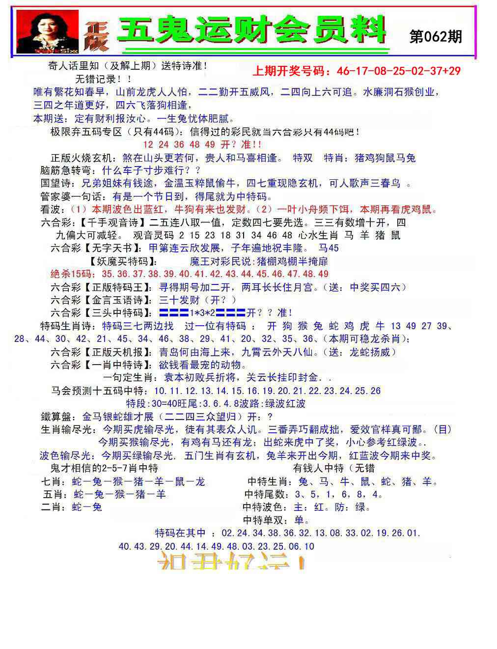 2026062五鬼运财会员料