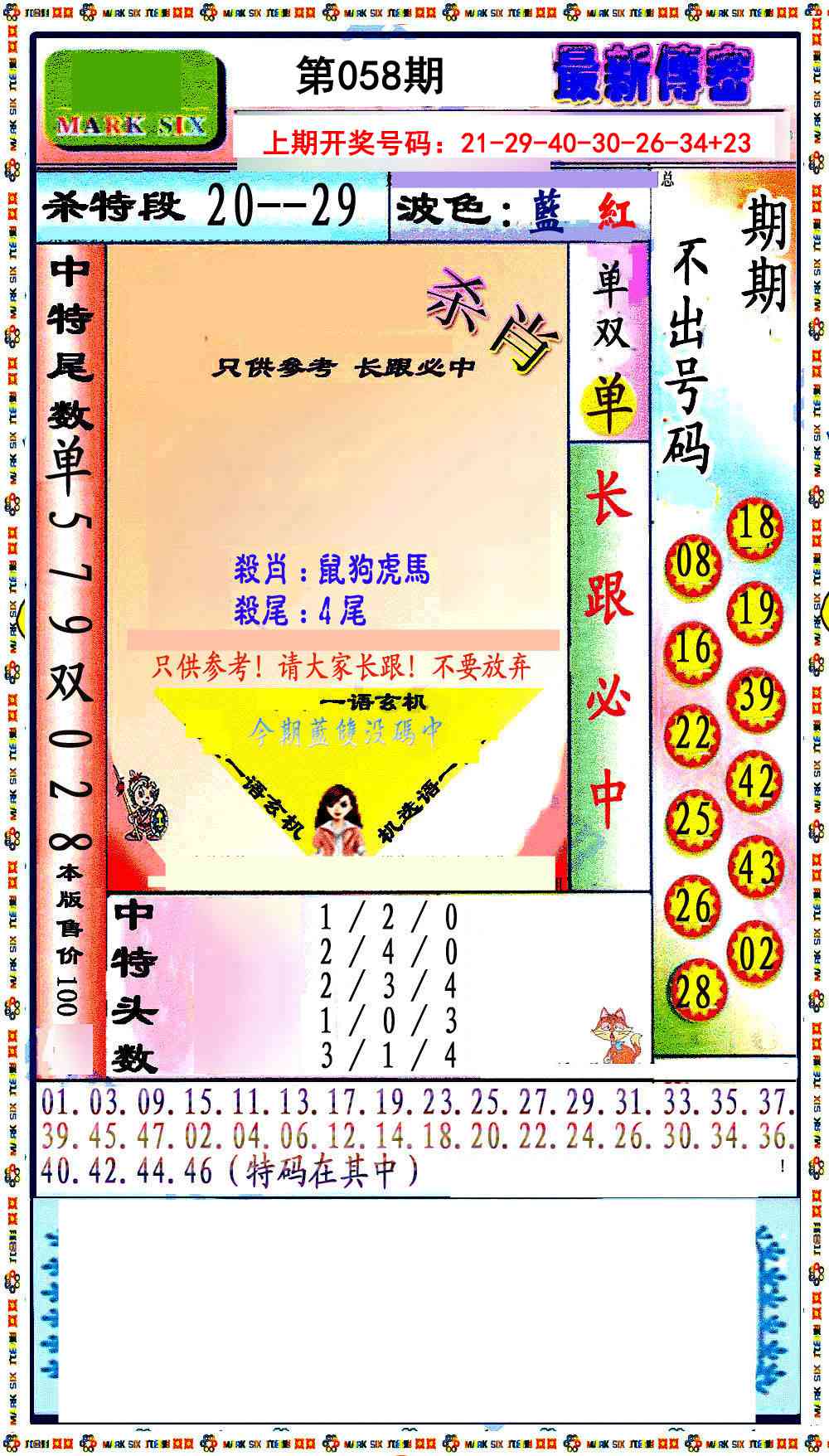 2026058最新传密绝杀6肖
