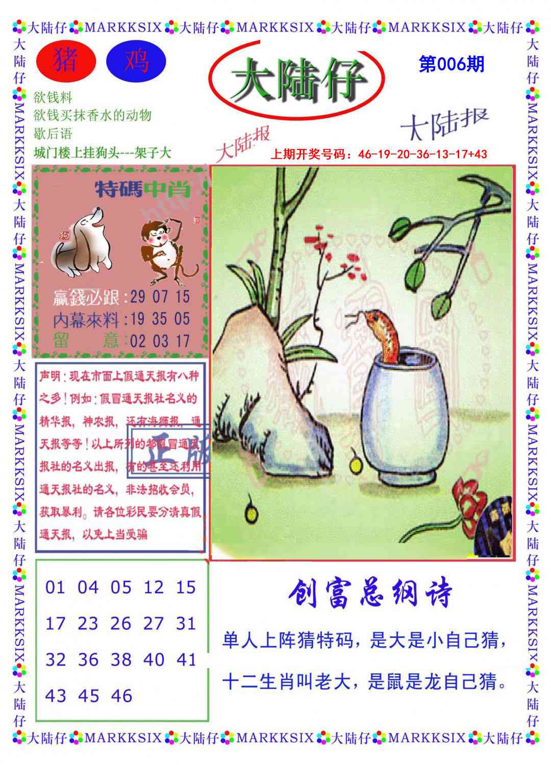标签: 说明:提供最快、最新、最全的彩色正版全年图纸新闻资讯,同时还提供六合港彩开奖时时在线直播、平特码数据生肖大小单双等走势分析、六合港彩及彩票开奖新闻资讯以及专家心水推荐等。
