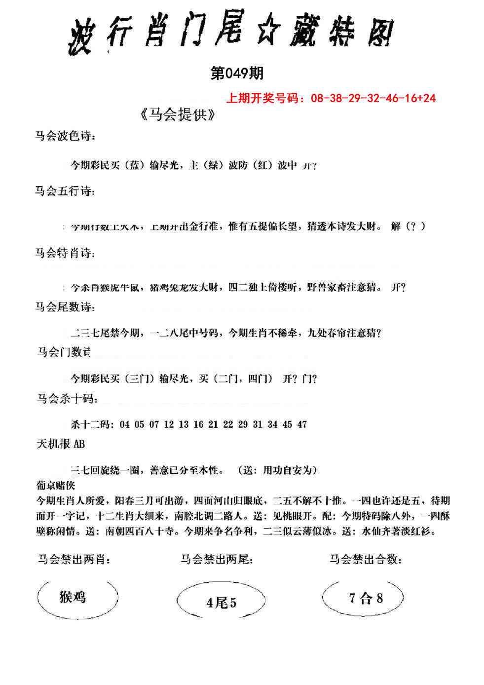 2026049波行肖尾藏特图