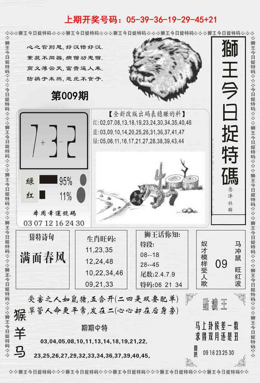 2026009狮王今日抓特码