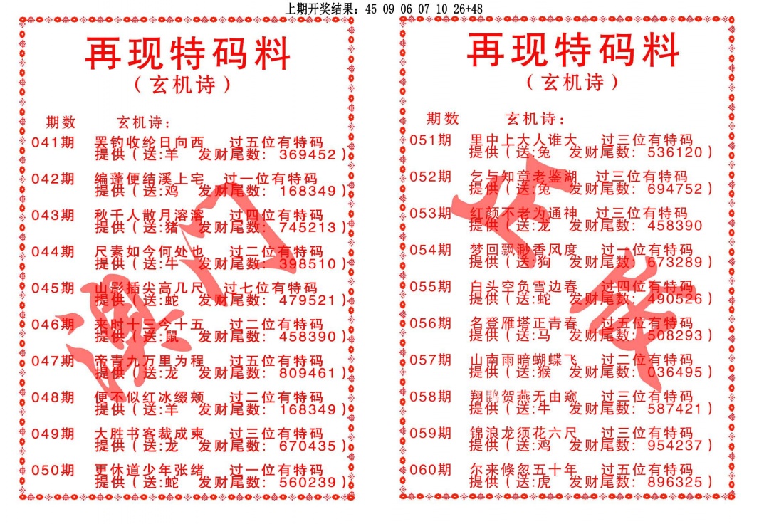 2026057再现特码料