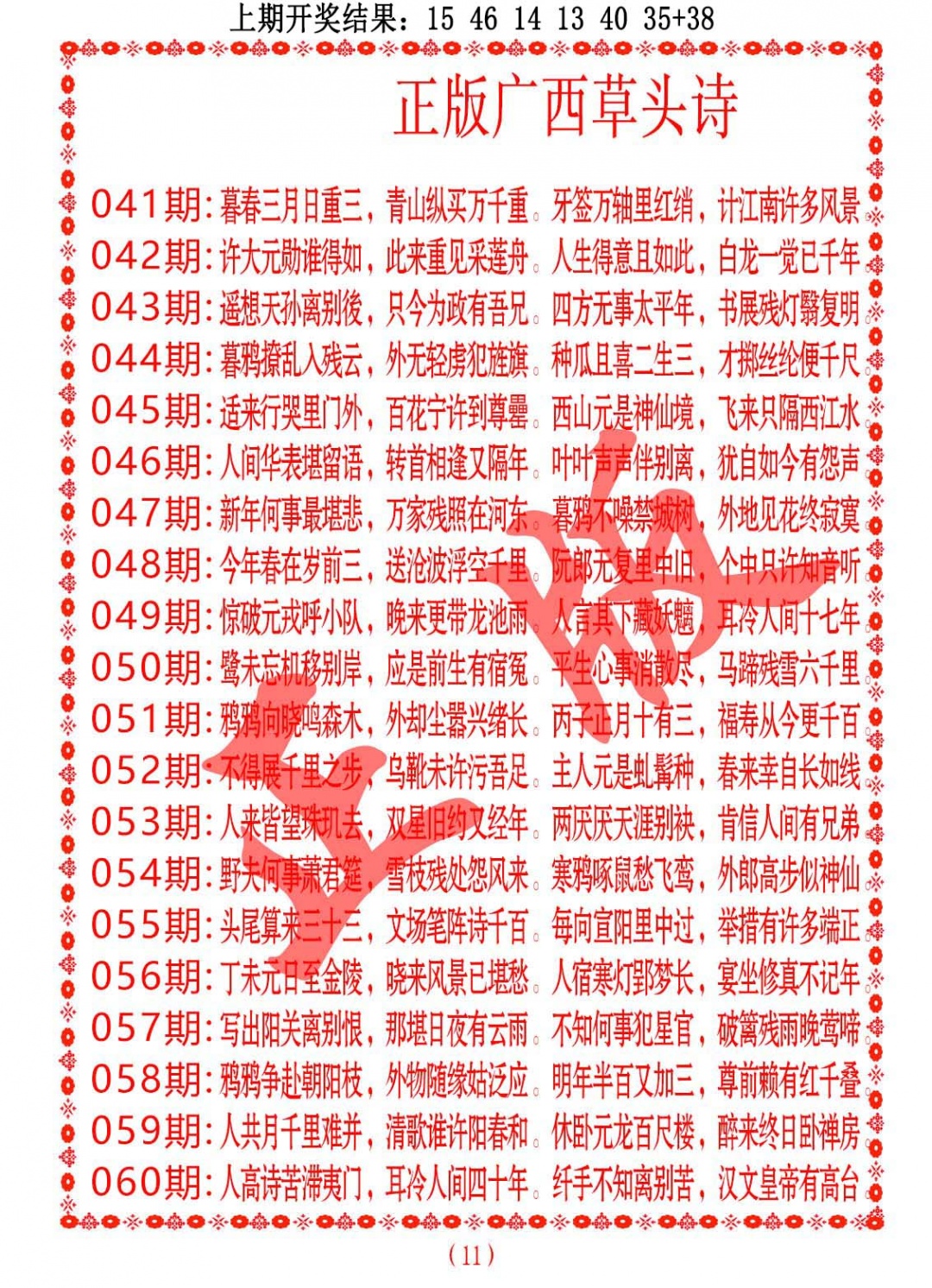 2026053正版广西草头诗