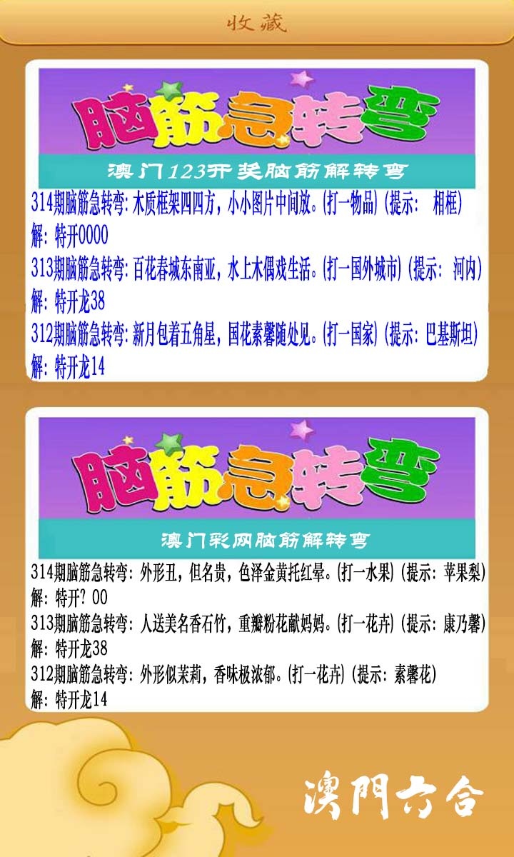2025314澳门脑筋急转弯