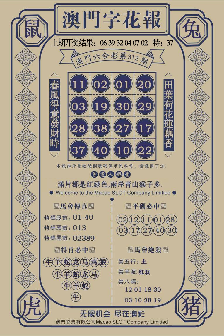 2025312澳门字花报