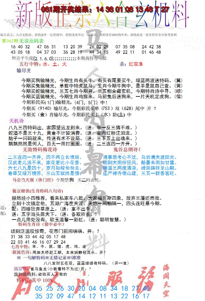 2026062正宗六合玄机料