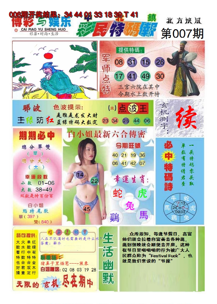 2026007中北彩民特码报