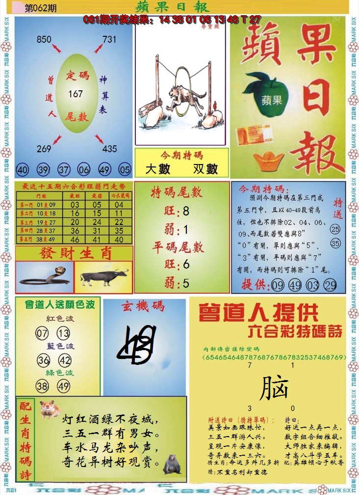 标签: 说明:提供最快、最新、最全的彩色正版全年图纸新闻资讯,同时还提供六合港彩开奖时时在线直播、平特码数据生肖大小单双等走势分析、六合港彩及彩票开奖新闻资讯以及专家心水推荐等。