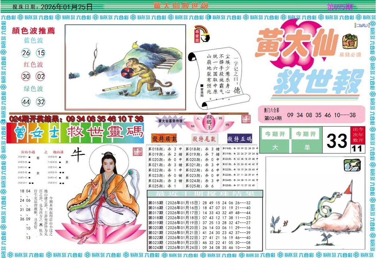 2026025黄大仙救世A