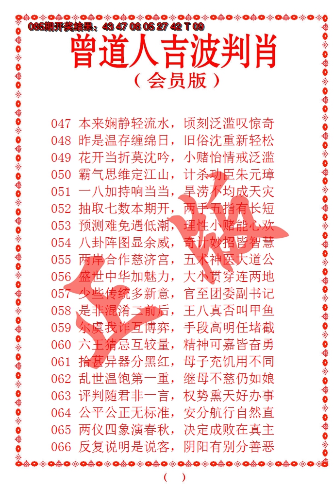 2026066曾道人吉波邦肖