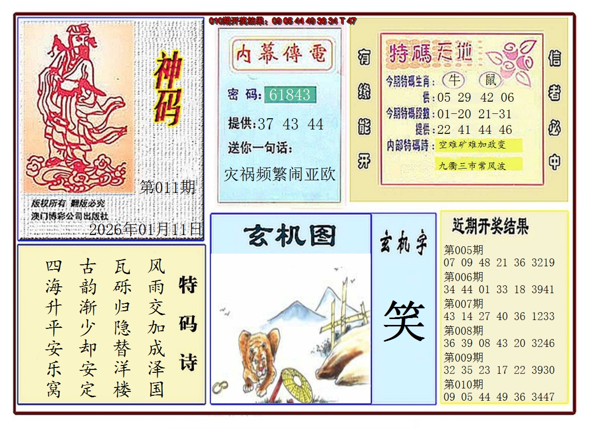 2026011黄大仙神码