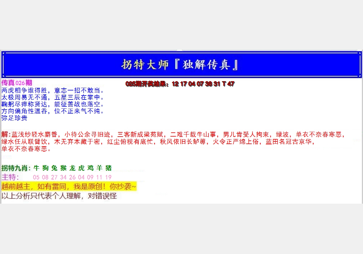 2026026拐特大师澳门传真