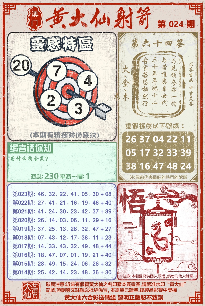 2026024黄大仙射箭