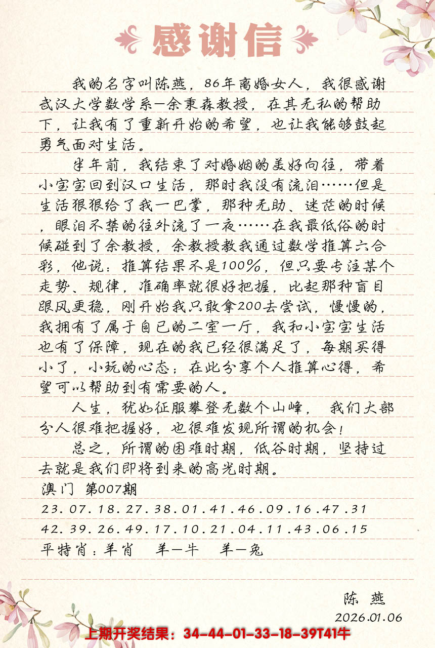 2026007陈燕感谢信