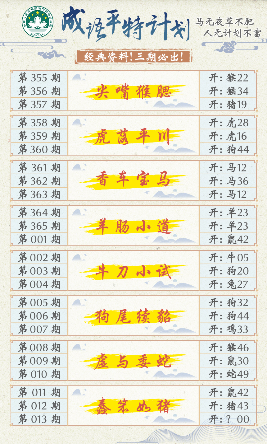2026013成语平特计划