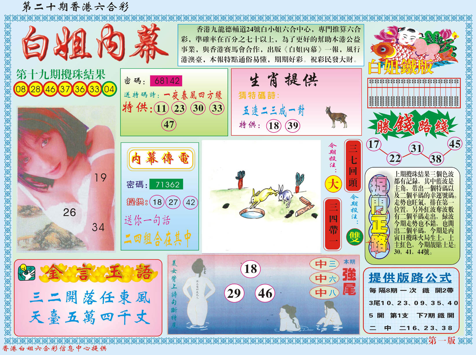 标签: 说明:提供最快、最新、最全的彩色正版全年图纸新闻资讯,同时还提供六合港彩开奖时时在线直播、平特码数据生肖大小单双等走势分析、六合港彩及彩票开奖新闻资讯以及专家心水推荐等。