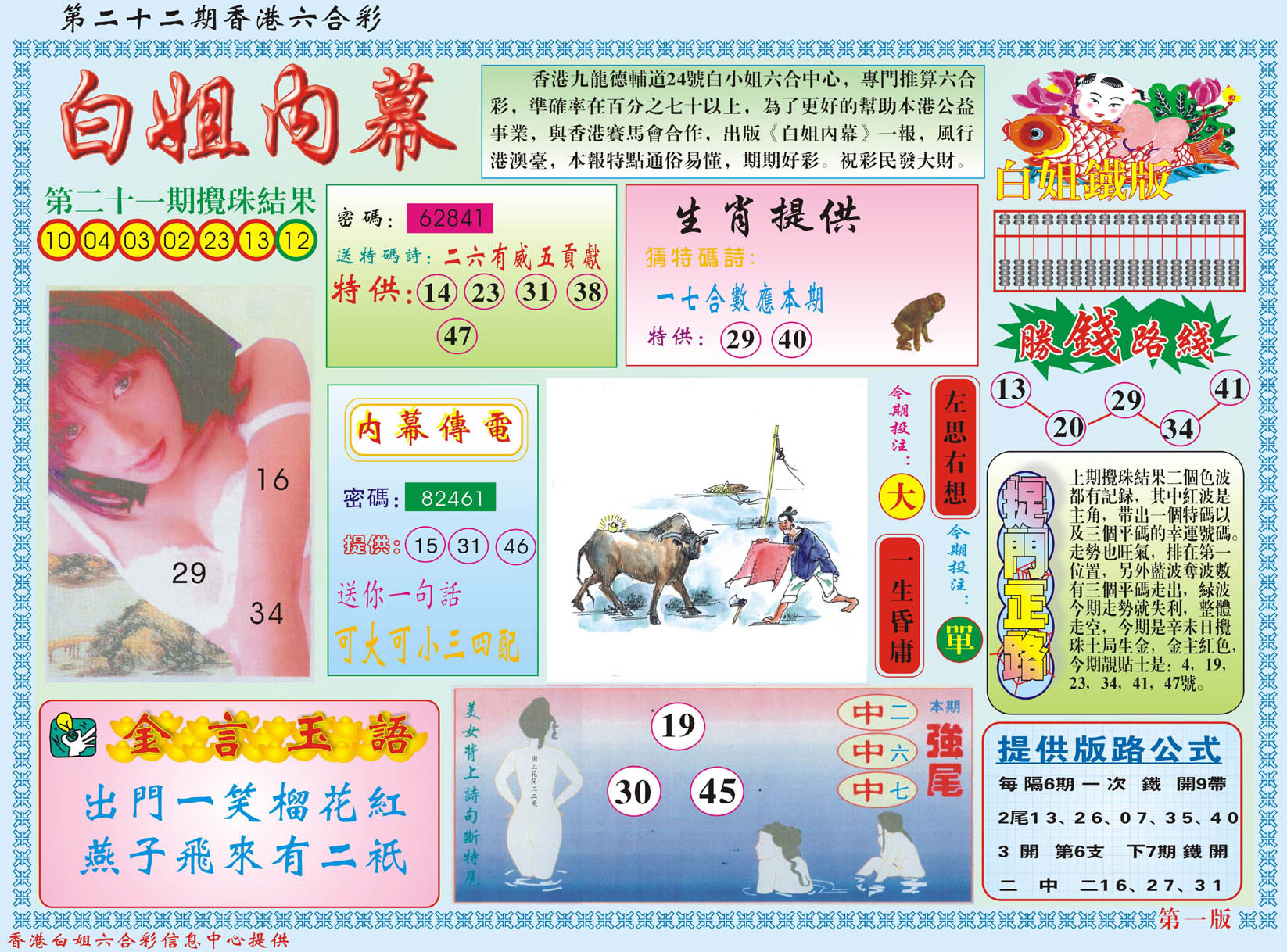 标签: 说明:提供最快、最新、最全的彩色正版全年图纸新闻资讯,同时还提供六合港彩开奖时时在线直播、平特码数据生肖大小单双等走势分析、六合港彩及彩票开奖新闻资讯以及专家心水推荐等。