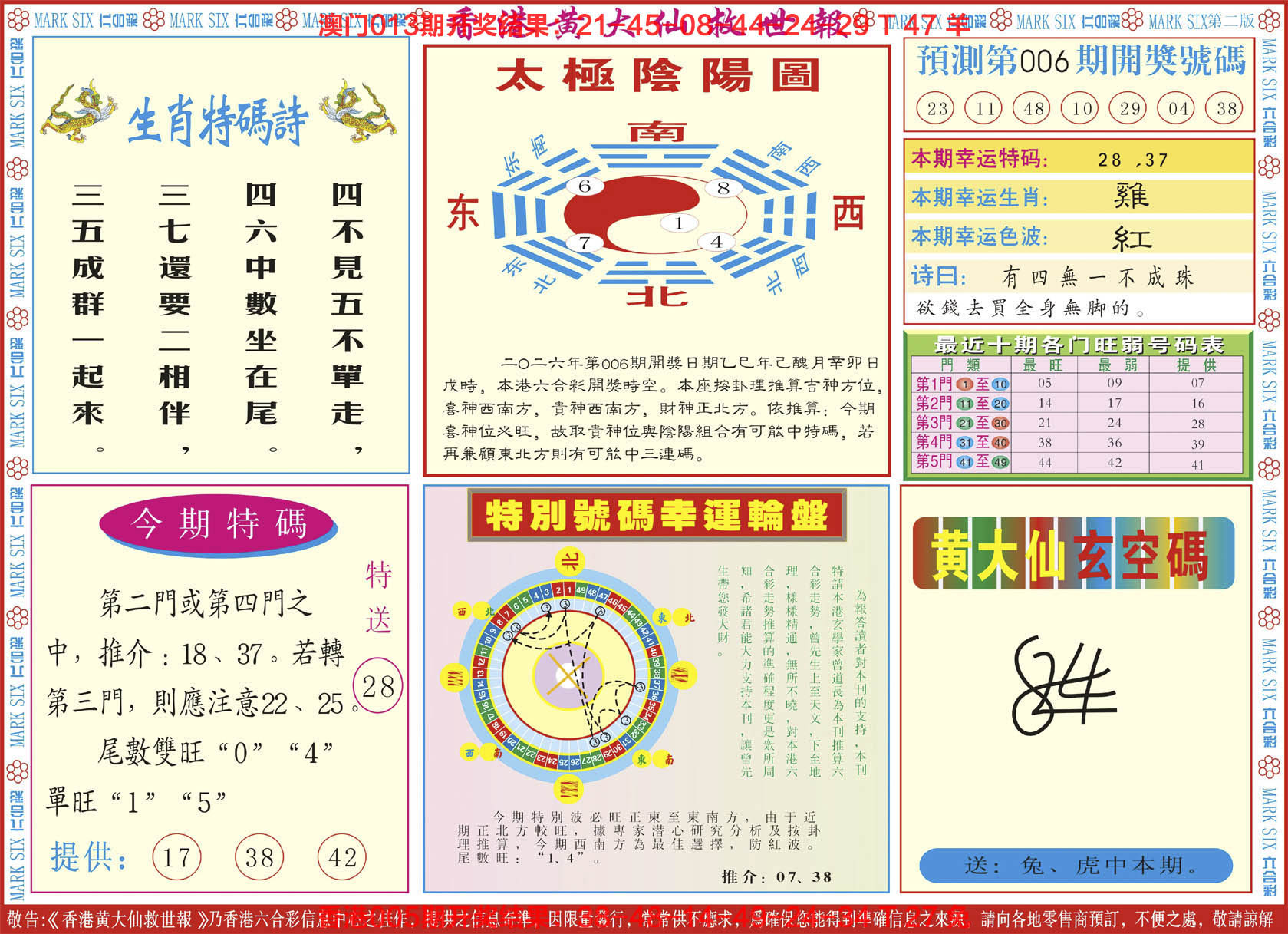 2026006新黄大仙救世B