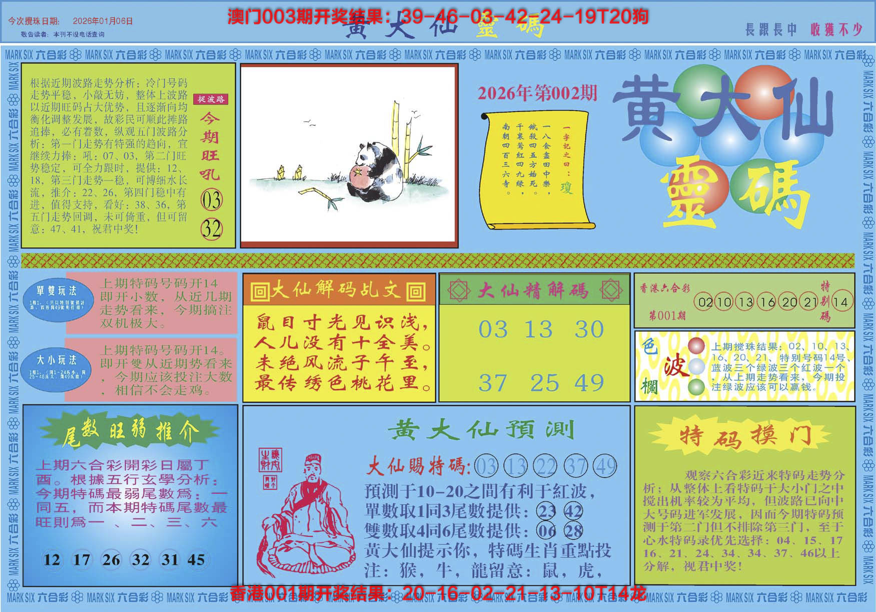 2026002黄大仙灵码A