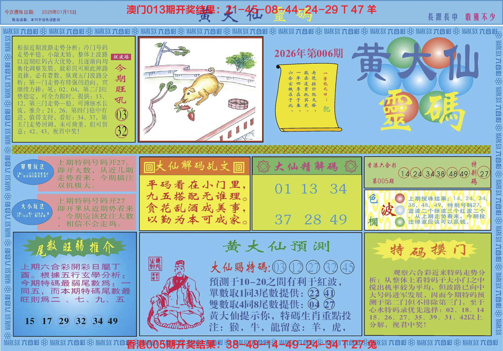 2026006黄大仙灵码A