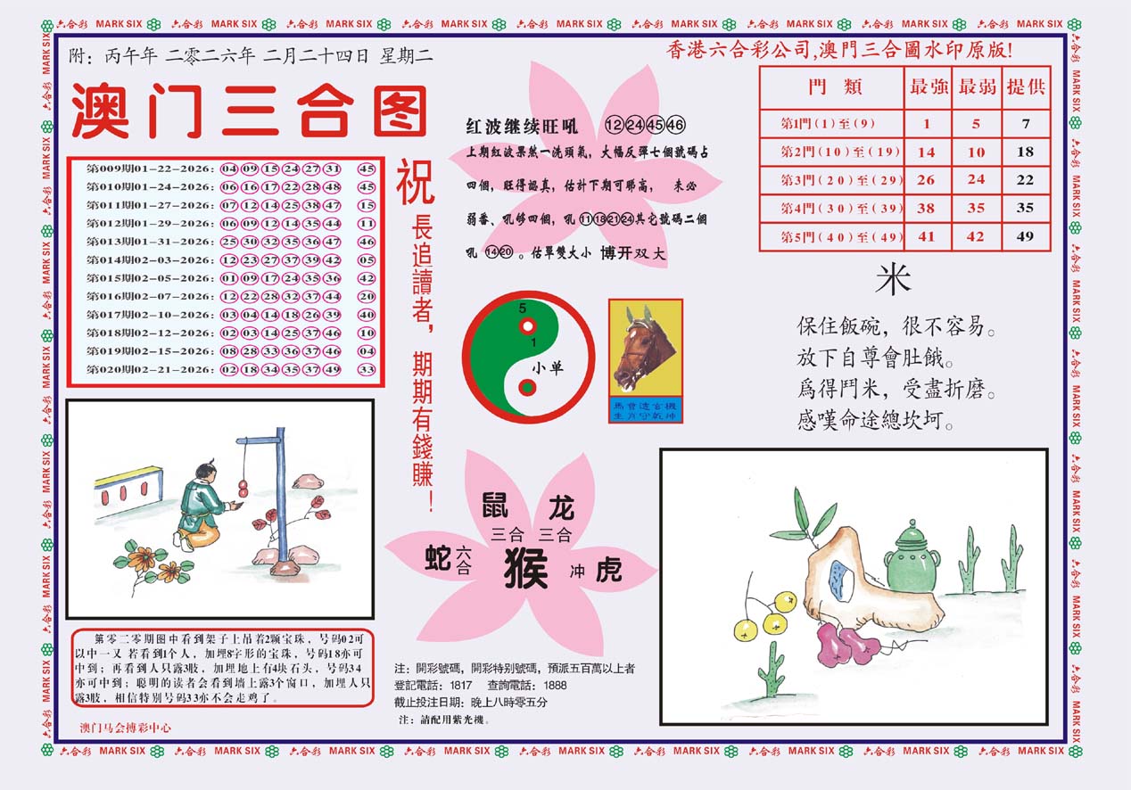 标签: 说明:提供最快、最新、最全的彩色正版全年图纸新闻资讯,同时还提供六合港彩开奖时时在线直播、平特码数据生肖大小单双等走势分析、六合港彩及彩票开奖新闻资讯以及专家心水推荐等。