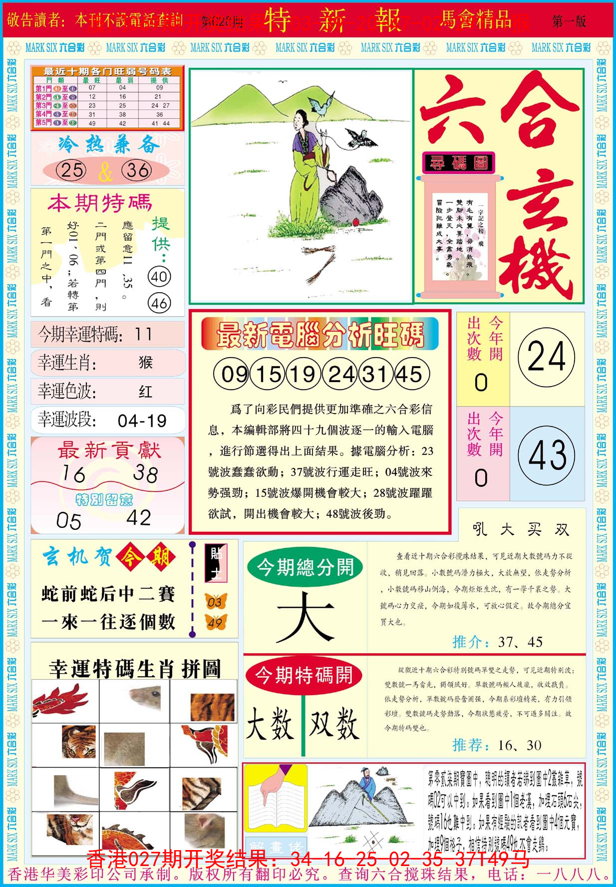 标签: 说明:提供最快、最新、最全的彩色正版全年图纸新闻资讯,同时还提供六合港彩开奖时时在线直播、平特码数据生肖大小单双等走势分析、六合港彩及彩票开奖新闻资讯以及专家心水推荐等。