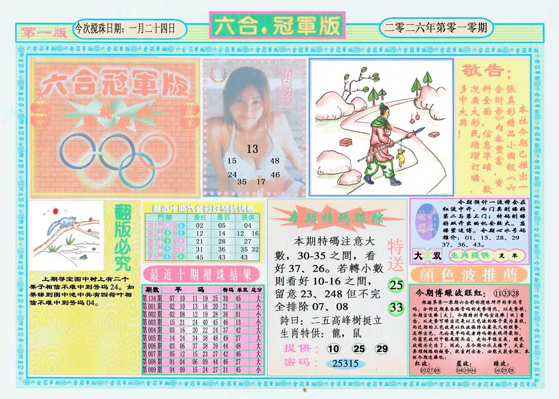 2026010六合冠军版A