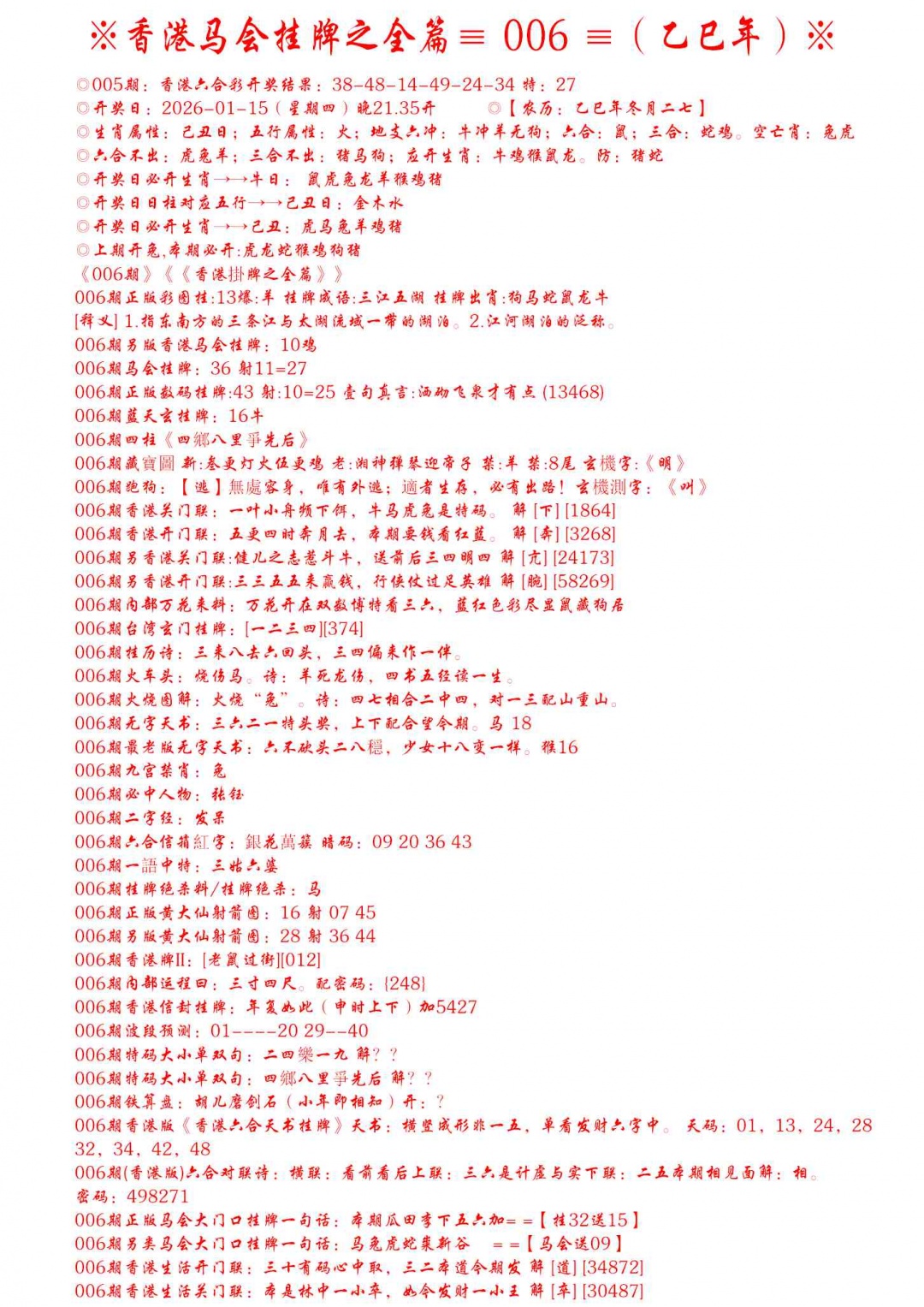 2026006手写马会挂牌