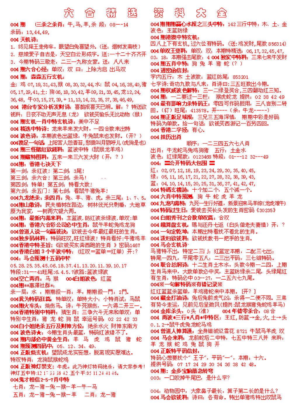 2026004六合精选资料大全