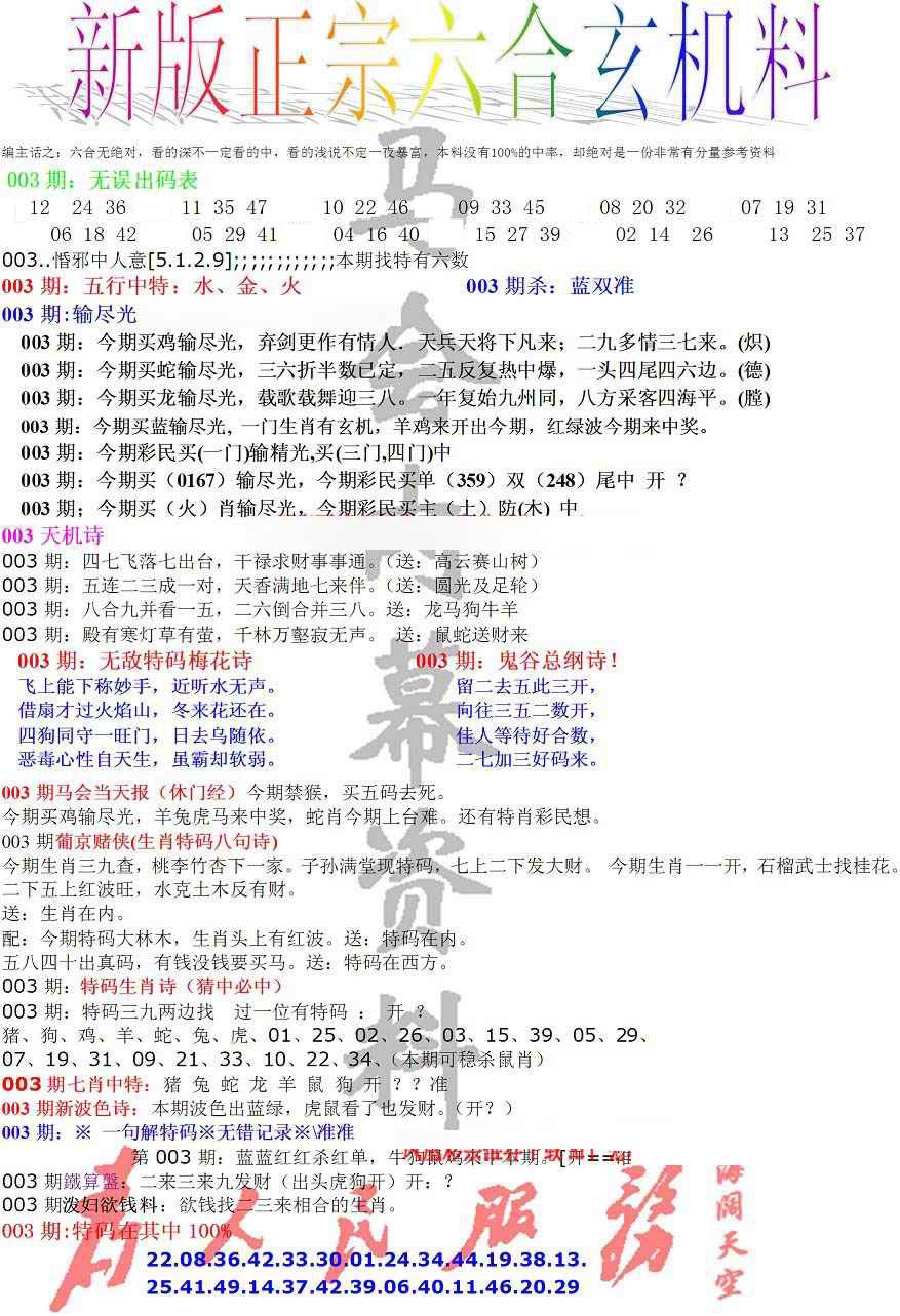 2026003正宗六合玄机料