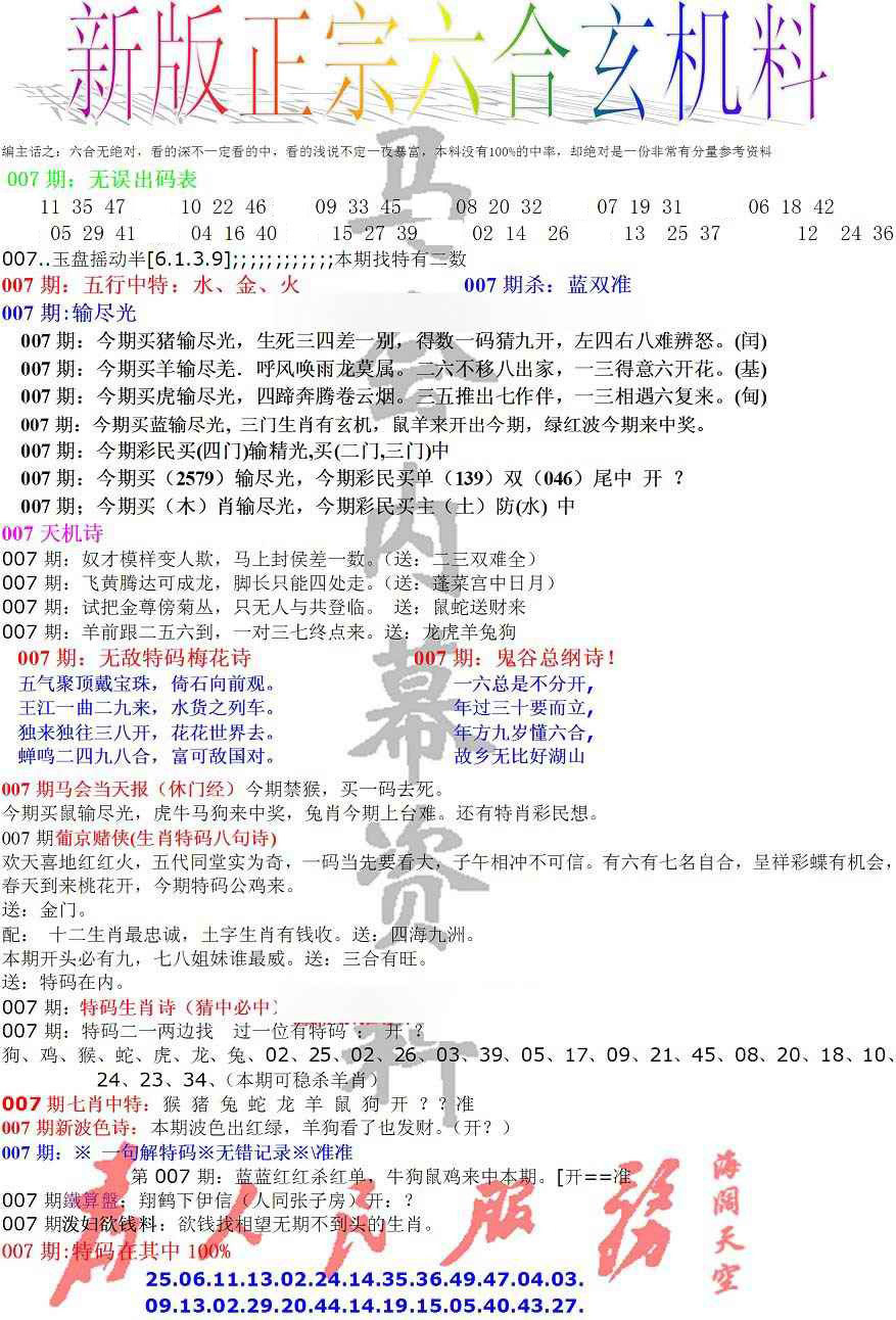 2026007正宗六合玄机料