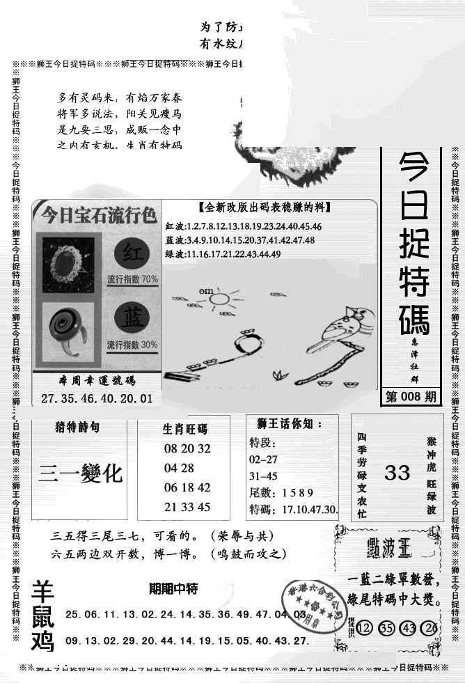 2026008狮王今日抓特码