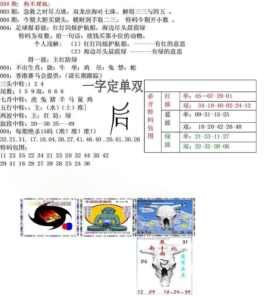 2026004狗不理特码报