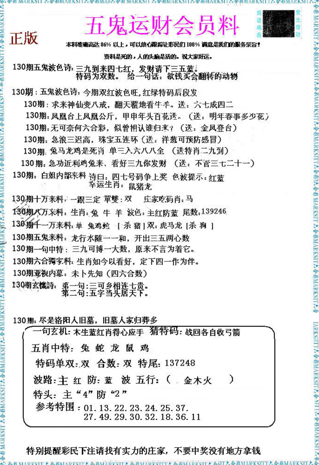 2025130五鬼运财会员料