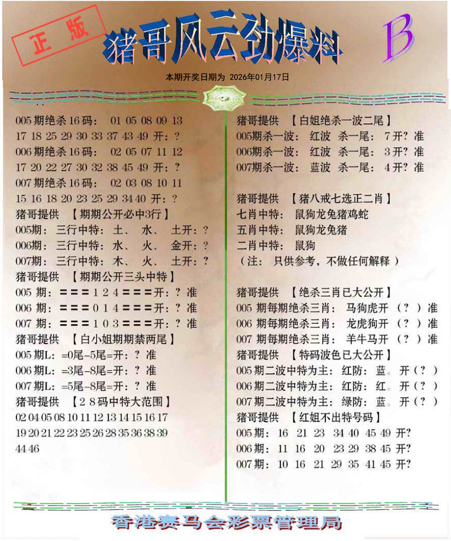 2026007猪哥风云劲爆料B