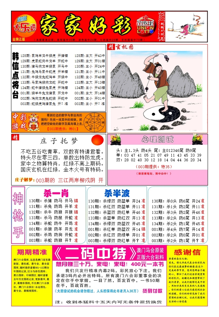 2026003家家好彩1
