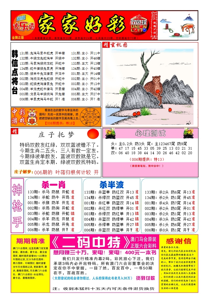 2026006家家好彩1