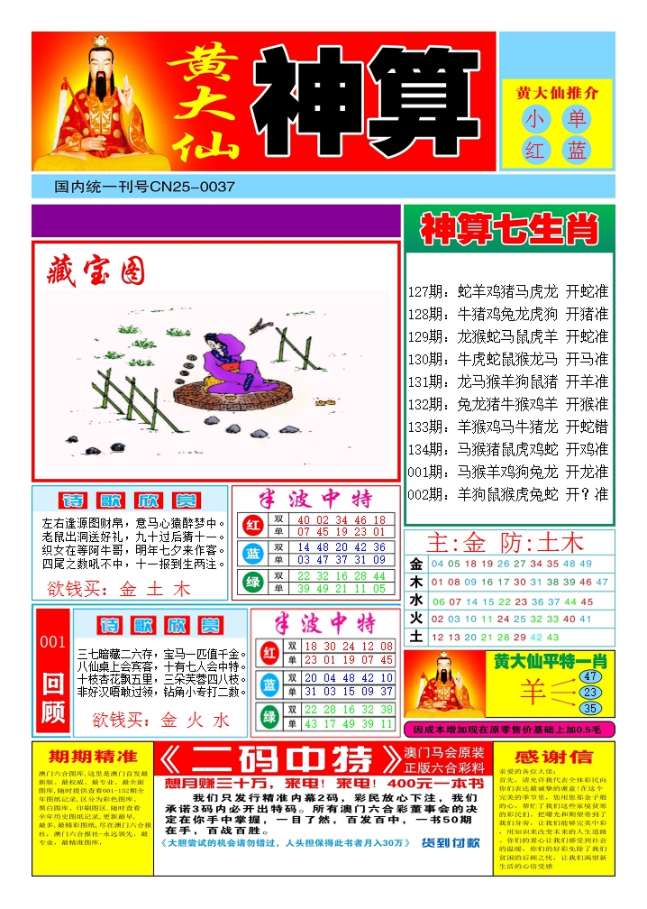 2026002黄大仙神算1